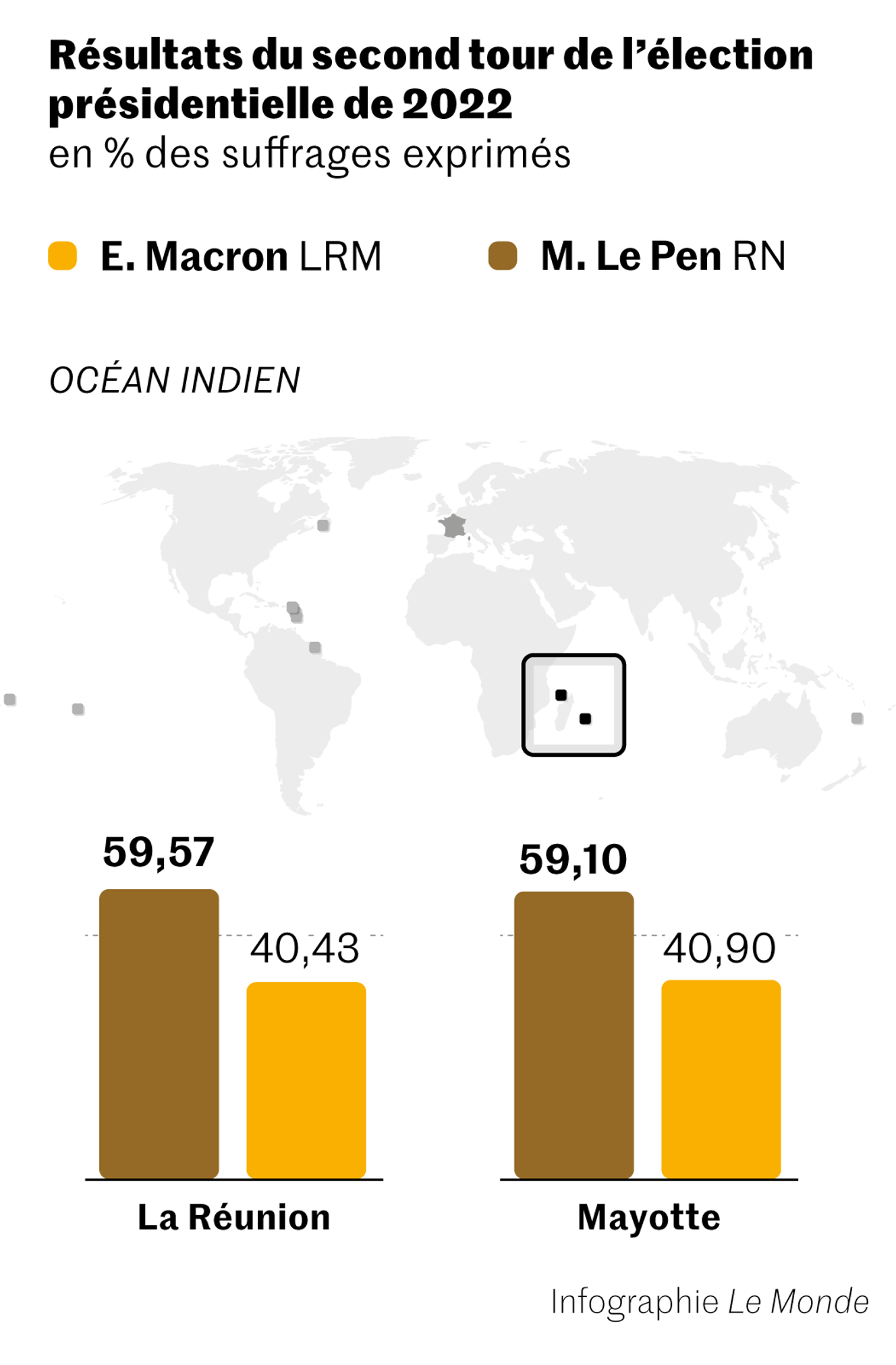 The far-right candidate also topped the Indian Ocean region. Is Mayotte, He received 59.1% of the vote. He already received 42.67% of the vote in the first round, and Mr. Came in first (23.96%) more than Mலlenchon. Is Meeting, The RN candidate received more than 59.5% of the vote. On this island, in the first round (40.26%), Mr. Marine Le Pen (24.73%) was ahead. Mellonson.