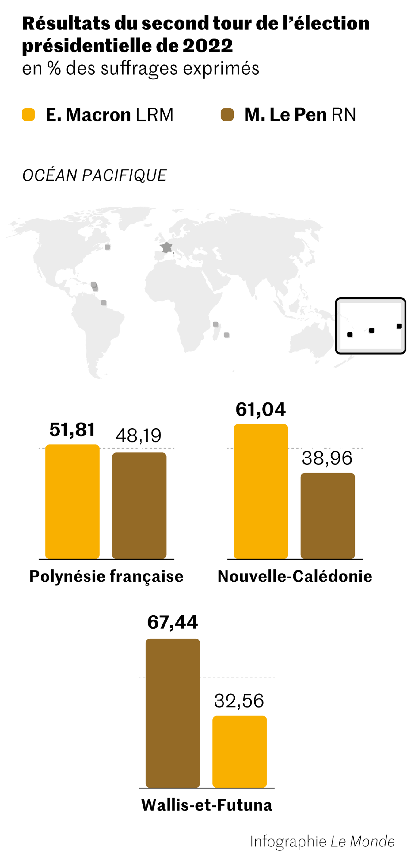 Mr. Macron, on the other hand, is leading in the Pacific region with 61% of the vote in the first round. New CaledoniaAt 51.8% French Polynesia And at 67.4% Wallis and Futuna, Again according to the Ministry of the Interior. Caledonian rights are particular Thanks to the outgoing president It led the electorate to vote three times against the independence of the territory, for ending the referendum process. In the last consultation held on December 12, 2021 – despite the fact that separatists were called not to participate due to health reasons and, as a result, scored more than 96.5% in favor of no – the lesson. Many controversies.